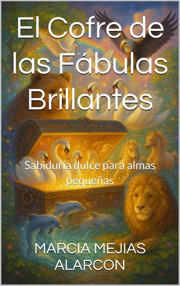 En el centro de este universo encantado se encuentra un cofre mágico, antiguo y luminoso. Cada vez que se abre, brotan de su interior fábulas llenas de color y ternura: osos valientes y sensibles, cisnes que aprenden sobre la humildad, tortolitas que descubren el valor de pedir ayuda, águilas que comprenden que la verdadera libertad nace del corazón, caballos que enseñan respeto y gratitud, leones que aprenden que el amor suena más fuerte que cualquier rugido, y delfines que escuchan la voz del océano y cuidan la vida.